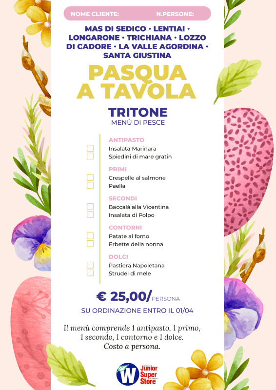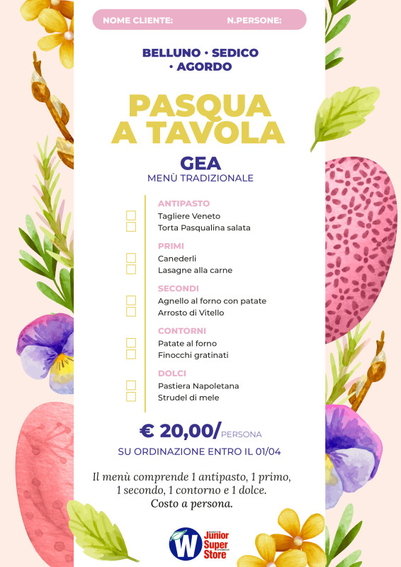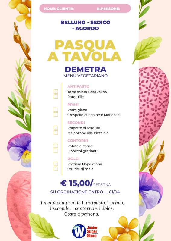 I menù di Pasqua sono disponibili su ordinazione entro il 1° aprile. La prenotazione può essere effettuata direttamente presso la gastronomia del proprio punto vendita, indicando il numero di persone e le preferenze per le portate. Il ritiro è previsto il sabato prima di Pasqua, così da avere tutto pronto per il pranzo della domenica.